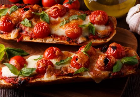 Fast food w wersji domowej, czyli zapiekanki, które smakiem i wyglądem bardziej przypominają pizzę caprese z mozzarellą, pomidorkami koktajlowymi i bazylią. Ich przygotowanie zajmie Wam dosłownie chwilkę. Sprawdzą się na szybki obiad, ciepłą kolację lub jako sycąca przekąska dla gości.