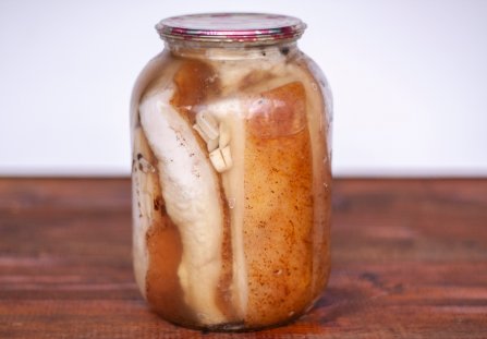 Umieść słoninę w wyparzonych i suchych słoikach. Jeśli to konieczne, dotnij w trakcie kawałki na cieńsze plasterki. Słonina powinna być ciasno ułożona w szkle i w pełni go wypełniać.