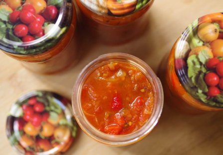 Sos do szakszuki przełóż do wysterylizowanych słoików i pasteryzuj ulubionym sposobem. Autorka sugeruje, żeby wstawić wypełnione gorącym sosem słoiki do gorącego piekarnika, a następnie pasteryzować na sucho przez 20 minut w 120 stopniach. Ja zawsze lubiłam pasteryzację w kąpieli wodnej, więc wypełnione gorącym sosem słoiki wstawiam do pasteryzatora z gorącą wodą i utrzymuję stan lekkiego wrzenia przez 10-15 minut. I gotowe, po wystudzeniu można wynieść słoiki do spiżarni.