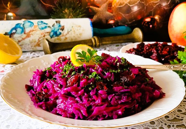Czerwona kapusta na ciepło z jabłkami i żurawiną jest doskonałym dodatkiem do kaczki, gęsi pieczonej. W Wielkopolsce daniem świątecznym bardzo popularnym jest zestaw - gęś, modra kapusta i pyzy na parze, ale modra kapusta na ciepło świetnie komponuje się też z pieczenią, zrazami lub schabowym.