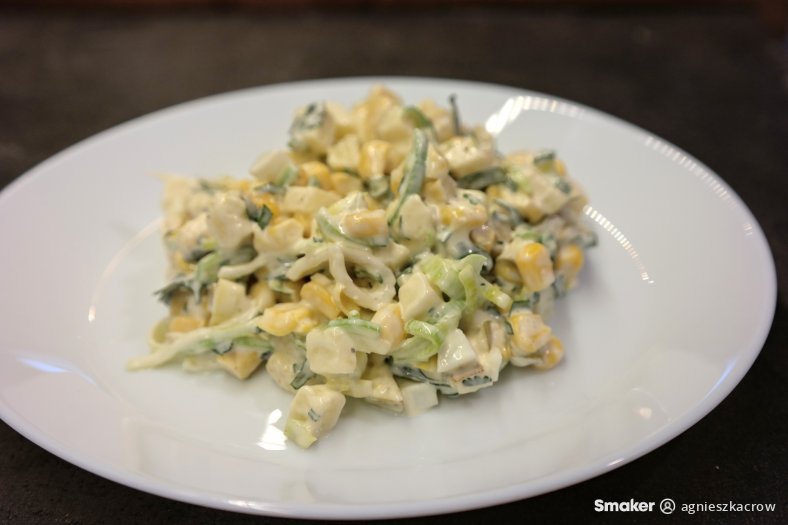 Prosta sałatka z kukurydzy, pora, jajka i jabłka - w 10 minut!