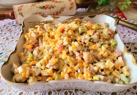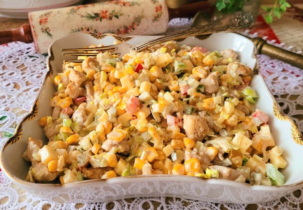 Doskonała sałatka na wszelkiego rodzaju imprezy. Niewiele składników plus sos majonezowy i sałatka gotowa. Możemy ją przygotować szybciutko, dzień wcześniej ponieważ sałatka lubi postać w lodówce i przegryźć się lub dojrzeć (jak kto woli). U nas od lat „balanga” króluje w Sylwestra i karnawale, który rozpoczyna się od Trzech Króli. To jest sałatka z tych znikających ze stołu jako pierwsze.