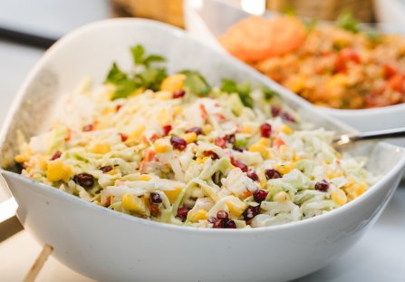 Sałatka z indykiem i żurawiną to propozycja na świąteczny stół i nie tylko, która zachwyci połączeniem delikatnego mięsa, chrupiącej kapusty oraz słodko-kwaśnej żurawiny. Całość jest kolorowa, o wyjątkowym aromacie i świeżości, a kremowy dressing idealnie łączy ze sobą wszystkie smaki. To doskonały wybór zarówno na lekki lunch, jak i elegancką kolację.