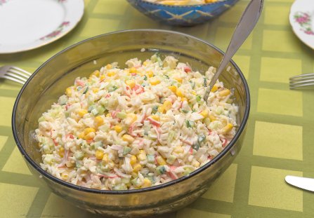 Prosta, a zarazem niezwykle efektowana sałatka z makaronem orzo, która skradnie serca gości. Cały proces przygotowania sprowadza się do ugotowania makaronu i pokrojenia zaledwie trzech składników: ogórków, paluszków surimi i cebuli. Do tego obowiązkowo kukurydza z puszki i sos bazie majonezu i jogurtu greckiego.