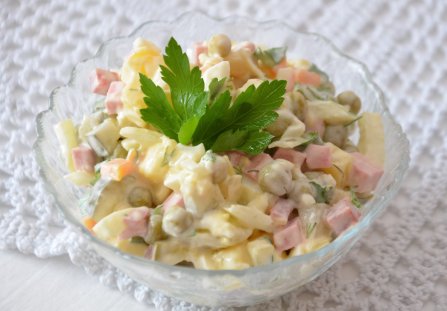 Święta to czas klasycznej sałatki jarzynowej – z warzyw korzeniowych z ogórkiem i groszkiem, czasem z dodatkiem jabłka czy jajka. Jeśli masz ochotę wprowadzić modyfikację w to tradycyjne zestawienie, sięgnij po mięsną wkładkę. Czy wiesz, że pierwotnie mięso stanowiło podstawę słynnego Oliviera? Sałatka z szynką i groszkiem będzie nawet bliższa oryginałowi niż królująca od lat na polskich stołach sałatka warzywna!