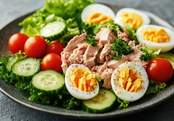 Lekka i pożywna sałatka z tuńczykiem, jajkiem i ogórkiem. Idealna na śniadanie, kolację lub posiłek do pracy. Jej przygotowanie zajmuje zaledwie kwadrans.