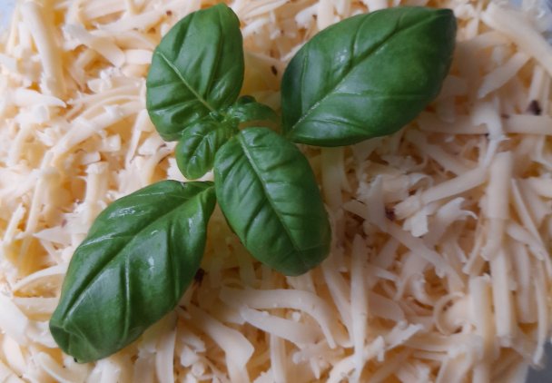 Posmarować majonezem. Ser utrzeć na tarce o grubszych otworach , posypać po wierzchu. Pozostawić w lodówce aby smaki się wymieszały.