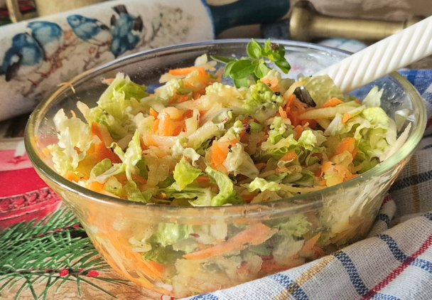 Prosta surówka do obiadu ze świeżych warzyw polanych olejem i sokiem z cytryny.