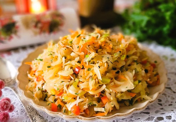 Surówka z kiszonej kapusty z jabłkiem, porem, marchewką i papryką to najlepszy dodatek do obiadu, szczególnie zimą. W naszym domu często podawana do ryb ale również do schabowego. Do świątecznego obiadu idealna. Prosta i smaczna.