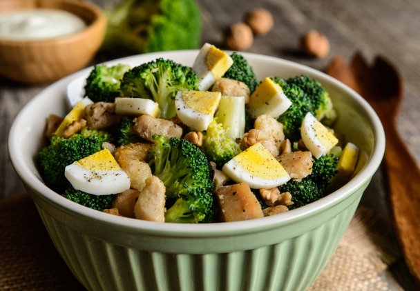 Ta sycąca sałatka z brokułami to prawdziwa bomba proteinowa, dzięki czemu idealnie sprawdzi się w diecie osób na diecie redukcyjnej czy uprawiających sporty. Nie brakuje jej klasycznych, bogatych smaków i różnych tekstur – miękkie mięso, lekko chrupiące warzywo i kremowe jajko tworzą idealne połączenie scalone delikatnym dressingiem o kwaskowatej nucie. Ta sałatka zaspokoi nawet silny głód, będąc idealną propozycją na śniadanie, obiad czy kolację.