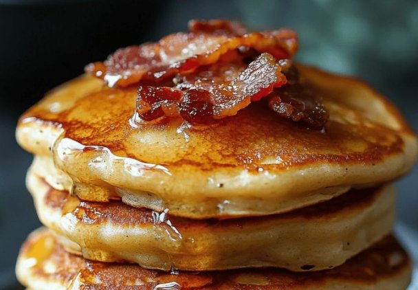 prosty przepis na pancakes z bekonem w środku, bardzo dobre z masłem i syropem klonowym!