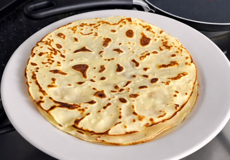Czekamy, aż naleśnik się zetnie. Przewracamy naleśnik na drugą stronę.