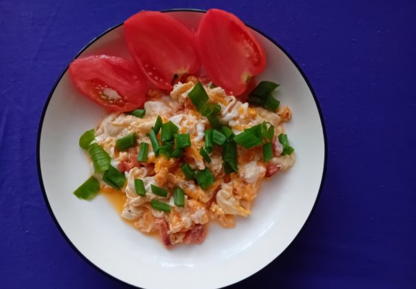Smaczna jajecznica na śniadanie lub kolację . Ilość jajek można zmienić, dajemy tyle ile chcemy.