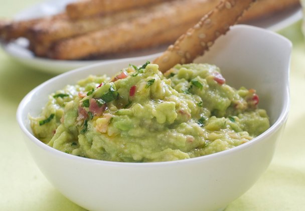 Awokado przekrój na pół, usuń pestkę, a miąższ wydrąż łyżką. Cebulę obierz i bardzo drobno posiekaj. Szczypiorek pokrój.