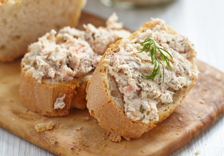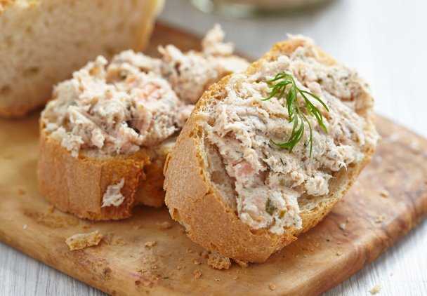 Pastę z wędzonego łososia na kanapki przełóż do szczelnych pojemników i wstaw do lodówki. Podawaj na świeżym pieczywie, udekorowanym pozostałym koperkiem. Alternatywnie możesz pastę również zamrozić.