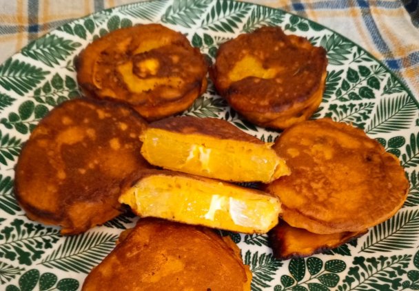 Plastry pomarańczy maczałem w cieście i smażyłem, na złoty kolor z obu stron.