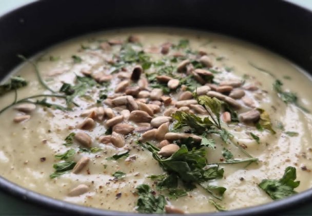 Gęsta, kremowa, aromatyczna, a bez zasmażki. Krem z kalafiora wspaniale smakuje z prażonymi pestkami dyni lub prażonym słonecznikiem Zupę możesz oczywiście zjeść też z grzankami lub z kaszą. Też będzie pysznie.