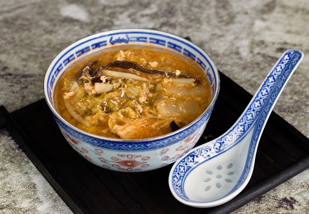 Ostro-kwaśna zupa z indykiem, kapusta pekińską i grzybami mun. Pyszna, gęsta i aromatyczna - idealna na jesienne chłody.