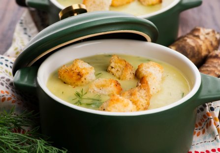Topinambur, znany też jako słonecznik bulwiasty, to roślina ceniona za jej jadalne korzenie. Można jeść je na surowo lub po obróbce termicznej. Mają sporo wartości odżywczych, a przy tym oryginalny, słodkawo-orzechowy smak. Aromatyczna zupa z topinamburu to idealna propozycja na rozgrzewający, jesienny posiłek.