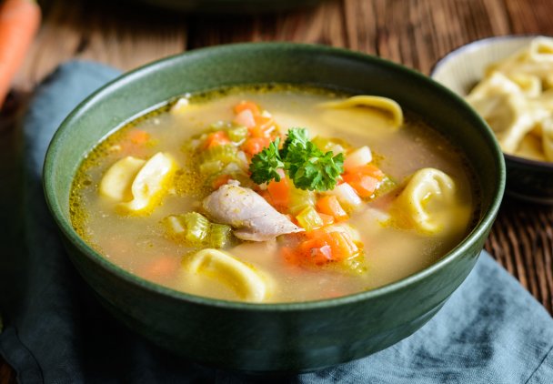 Zupa z tortellini to łatwy i szybki przepis na sycące danie z tortellini i kurczakiem, pełne smaku, aromatu i rozgrzewającej siły. To idealna zupa na jesień, kiedy oczekujesz czegoś więcej od zupy! Całość przygotujesz w zaledwie 40 minut, a dużą zaletą tego dania jest możliwość modyfikacji o ulubione warzywa czy muszelki z dowolnym nadzieniem.