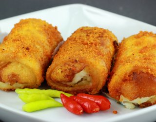 Pikantne krokiety to delikatne naleśniki zwinięte wokół kremowego, ostrego fa...