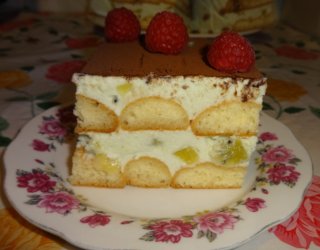 Bardzo smaczny, delikatny przypominający deser tiramisu, kiwowy sernik na zimno.