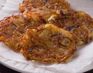 Placki z topinamburu i ziemniaków, z dodatkiem czerwonej cebuli, zapewniają r...