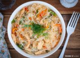 Jeśli wolisz bardziej egzotyczne smaki, wypróbuj makaron ryżowy z warzywami w stylu azjatyckim. Podsmażone warzywa, sos sojowy i odrobina imbiru tworzą lekką, ale sycącą kompozycję, która zachwyca aromatem.